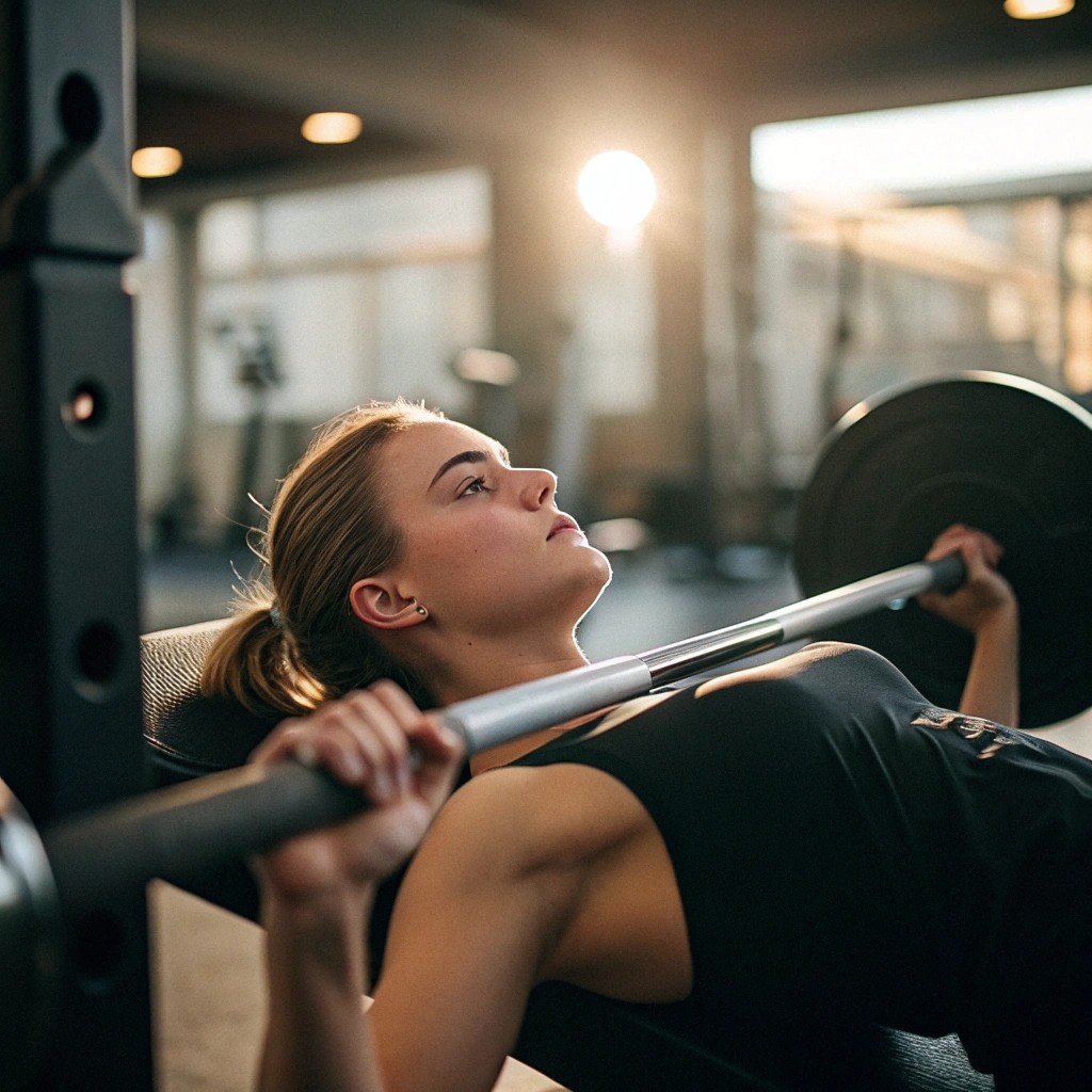 - FitnessAI Barbell Bench Press: 4 sets x 6-8 reps at AI-recommended weight